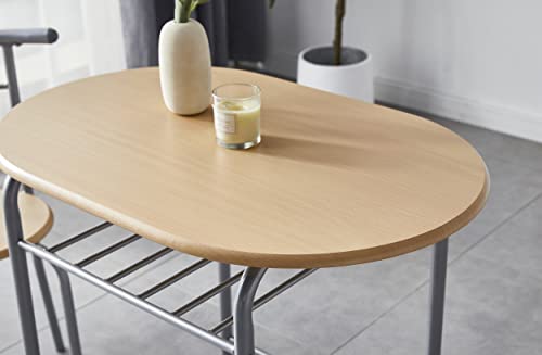 Yaheetech 3 Piece Compact Dining Room Set, Dining Table & Chairs Set for 2, Breakfast Bar Table Set with Metal Legs and Built-in Wine Rack for Small Space/Apartments/Kitchen, Natural, 80x53x75.5cm