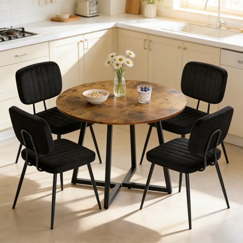 Warmiehomy Dining Room Table Set with 4 Chairs, Round Small Wooden Kitchen Dining Table and Chairs Set 4 for Small Spaces Home Apartment Kitchen Living Room Office, Brown+Black