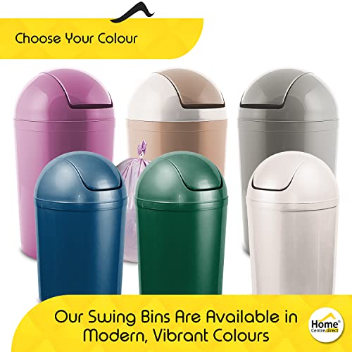 Home Centre Compact Plastic Swing Top Waste Bin 5 Litre Green House Office Bathroom Lobby Dustbin Convenient Flap Top Cylindrical Shape Hygienic Waste Disposal Versatile Daily Usage