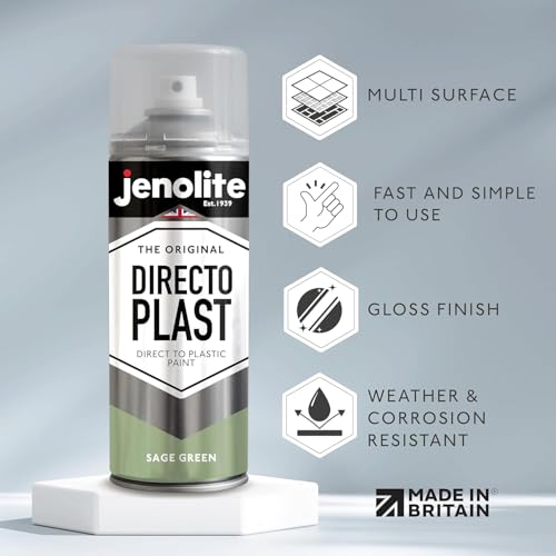 JENOLITE Directoplast Gloss Spray Paint | SAGE GREEN | 400ml | Paint for Plastic Surfaces | For All Types Of Plastic | No Primer Required Multi Surface Paint | Spray Paint for Plastics | RAL 130 70 20