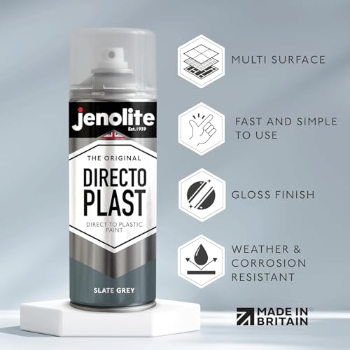 JENOLITE Directoplast Spray Paint for Plastic - Slate Grey, Gloss Finish, Multi-Surface Indoor and Outdoor Paint - No Primer Needed, RAL 7031, 400ml (13.5fl oz)