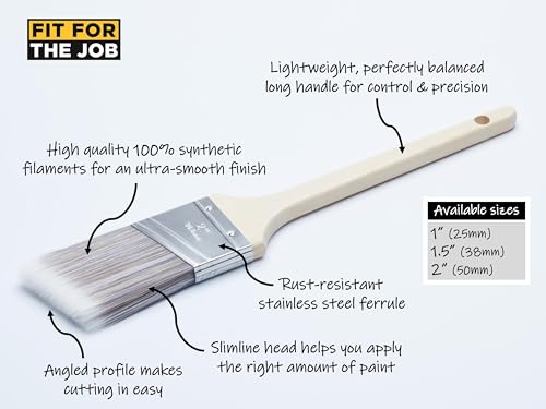 Fit For The Job 2 inch Diamond Cutting In Brush DIY Paint Brush For A Smooth Finish Painting with Emulsion, Gloss and Satin Paints on Walls, Ceilings, Furniture, Wood & Metal, 2" 50mm