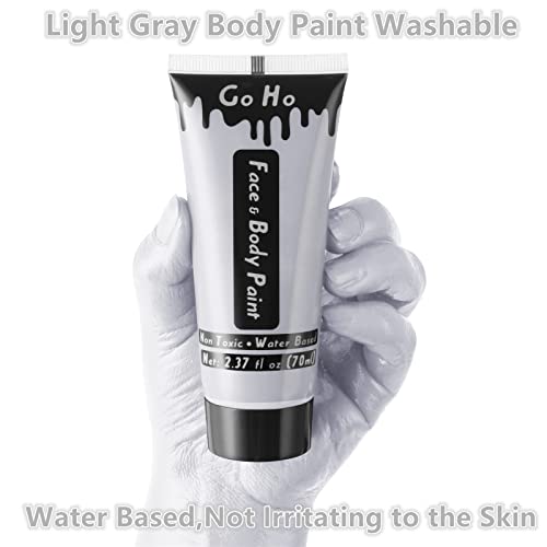Go Ho Light Grey Body Paint Washable (2.37 oz,70 ml),Water Based Cream Grey Face Paint,Gray Face Body Paint for SFX Cosplay Costumes Festivals Halloween Make up