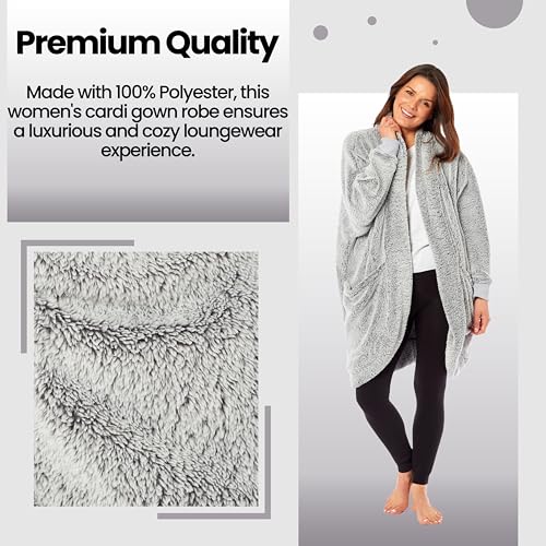 Daisy Dreamer Womens Cardi Gown Robe Ladies BathRobe House Coat Comfort Stylish Dressing Gowns Overcoat Long Sleeve Robes for Super Soft Warmth and Cosy Loungewear with Pockets, L/XL