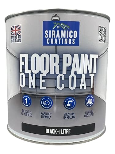 SIRAMICO COATINGS One Coat Anti-Slip Floor Paint | 1 Litres | 5 Modern Colours I Waterbased, Quick Drying Formula | White, Black, Greys (Black, 1 Liter)