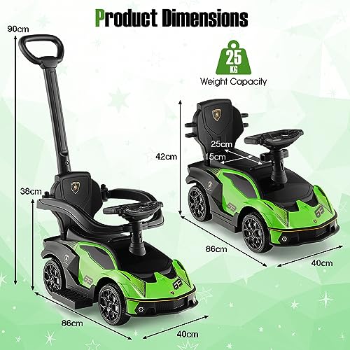Maxmass 3-in-1 Kids Ride on Push Car, Licensed Lamborghini Foot to Floor Slider with Removable Push Bar & Guardrail, Underneath Storage, Horn Sound, Toddlers Push Walking Car for 12-36 Months (Green)