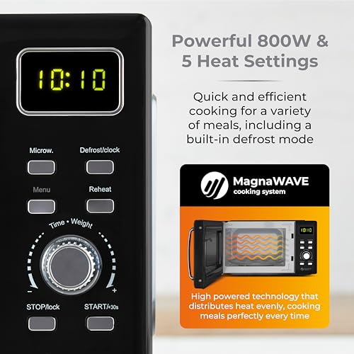 Tower T24041BLK Digital Microwave with Sleek Mirror Door, 800W, 20L, Black & Chrome