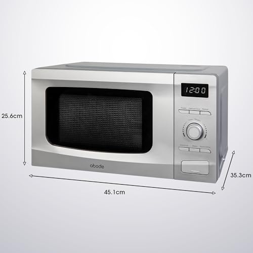 Abode 20L Digital Microwave - 700W with 8 Auto Cook Menus, Silver, 5 Power Levels & Timer, Button & Dial Control, Defrost Function