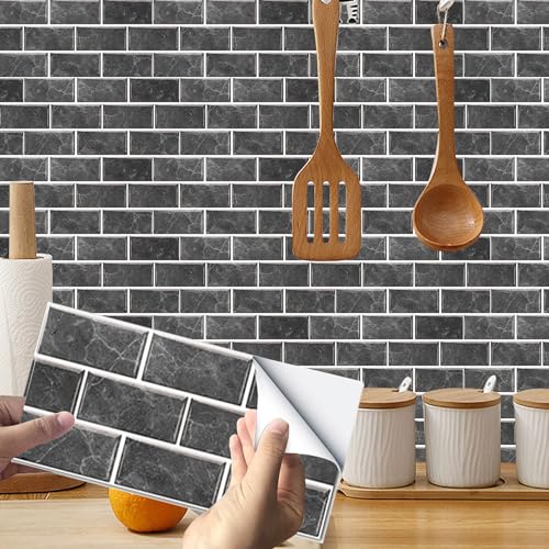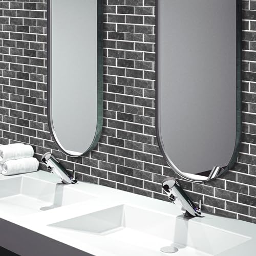 Grey Brick Tile Stickers for Bathroom Kitchen Waterproof Vinyl Stick on Tiles Backsplash Self Adhesives Wall Tile Transfers Peel and Stick Tile Decals for Living Room - 30x15cm (12 Sheets)
