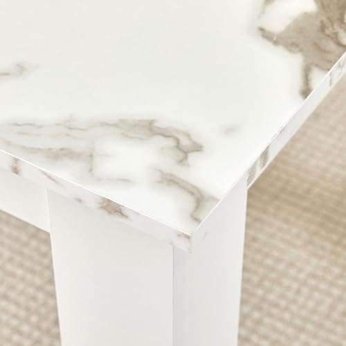 NICEME Compact Dining Table and 2 Chairs, Small Dining Room Set for 2 Seater Kitchen Table with Chairs for Small Space Saving, Glossing Tabletop 75x75 cm (Marble-White Table, 2 Seats, PU White #1)