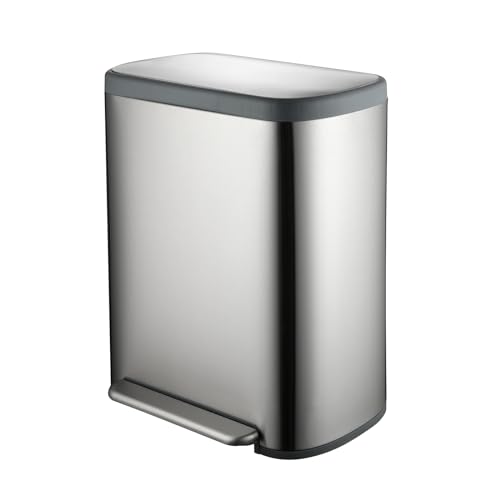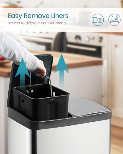 JM ·YIPENG 40L Kitchen Recycling Bins,2 x 20L Double Rubbish Bin with Lids and Plastic Inner Buckets,Stainless Steel Dual Bins for Kitchen Recycling and Waste