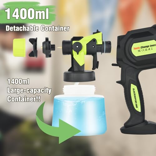 Paint Sprayer, 800W HVLP 1400ML Electric Paint Spray Gun for Walls and Ceilings, Adjustable Flow, 5 Nozzles and 3 Patterns, Cleaning Brush, 100 DIN-s, for Home DIY, Cabinet, Crafts, Fence Sprayer