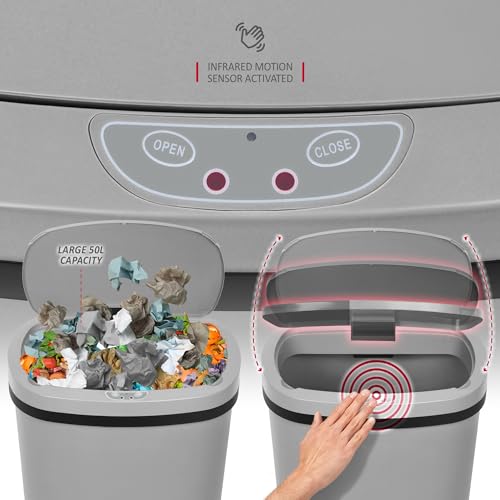 NETTA 50L Sensor Bin for Kitchen - Large Touch-Free Automatic Motion Sensor Waste Rubbish Bin, Dustbin, Trash Can 50 Litre - Grey