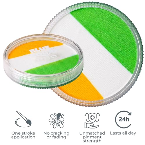 Blue Squid PRO Face Paint - Professional Water Based Single Cake Facepaint & Body Paints - SFX Makeup, Kids Adults Painting for Costume, Halloween Face Paints for Children- Green, White Orange 30g/1oz