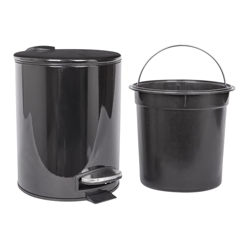Harbour Housewares 5L Bathroom Bin - Black - Round Stainless Steel Pedal Bin Slim Kitchen Rubbish Trash Can Garbage Dustbin with Lid and Inner Liner Bucket