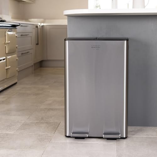 CHARLES BENTLEY Kitchen Bin, 60 Litre, Double Compartment, Kitchen Bin, Stainless Steel, Rubbish Bin, Bins for Kitchen, Waste Bin, Pedal Bin, Double Bin, Pedal Bins, for Kitchen (71x45x36cm)