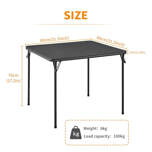 BOOSDEN Foldable Table, Folding Table for Indoor and Outdoor Use, 2.6 ft Square Card Table, Collapsible Design, Lightweight and Durable, Fold Up Tables, Ideal for Camping, Dining, Picnic, Black