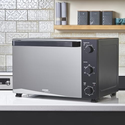 Cooks Professional Mini Oven | Electric Multi Function Countertop Cooker | 34L Capacity | Adjustable Temperature Control & Timer | 1500W | Includes Roasting Dish & Wire Rack | Black and Silver