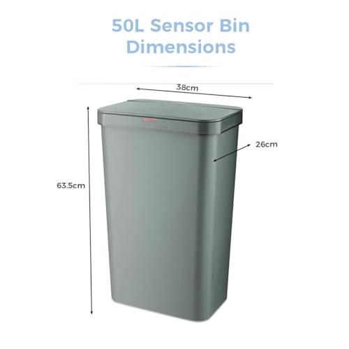 Tower T838005FG Rectangular ABS Sensor Bin with Bin Liner Retainer Ring, 50L, Forest Green