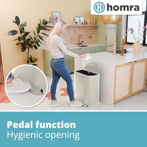 Homra Dual Kitchen Bin 60l – Double Rubbish Bins 2x30l – 2 Compartment Pedal System – Waste&Recycling Separation – Soft Close Design – Inner Buckets with Handles – Stainless Steel – Odour Filter