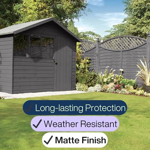 SAVING HUB Fence Paint 5L - Garden Shed Paint, Furniture Paints - Outdoor Exterior Wood Treatment - Used On Rough Swan & Smooth Planed Wood - Sheds & Fences Life Plus - Dry in 4 Hours (Slate)