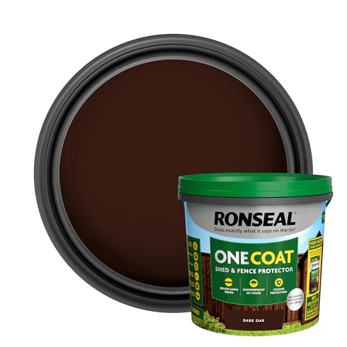 SAVING HUB One Coat Fence Life Paint - Garden Shed & Fence Paint - for Rough Wood - Trellis, Sheds & Wooden Structures - Showerproof in 1 Hour (Dark Oak, 5 Liter)