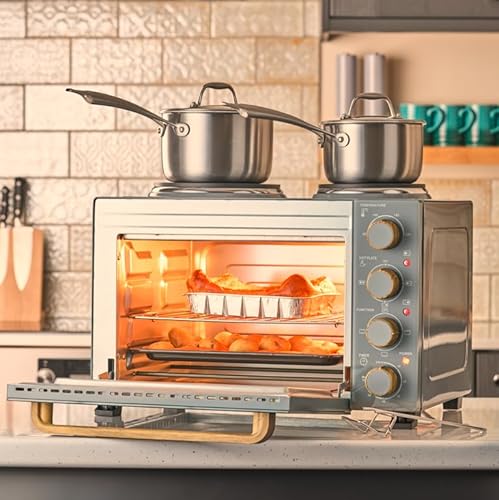 Cooks Professional Mini Oven with Hobs | Energy Efficient Electric Countertop Cooker with Two Hot Plate Hobs & Wire Rack Baking Tray | Kitchen Table Top Grill Ovens | 28L Capacity | Nordic Grey…