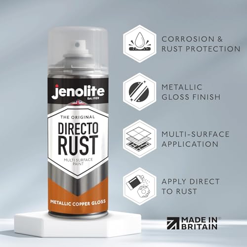 JENOLITE Directorust Metallic Gloss Spray Paint | COPPER | 400ml | Multi-Surface Copper Spray Paint for Metal, Wood, Plastic | All-In-OnePrimer, Undercoat and Topcoat | Interior & Exterior