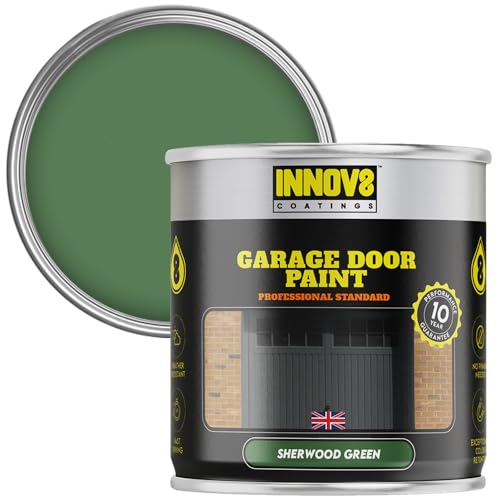 INNOV8 COATINGS GARAGE DOOR PAINT - NO PRIMER OR TOP COAT - SATIN - 750 ml - Professional Standard - Fast Dry - Exterior & Interior - uPVC, Metal, Aluminium, Wood GARAGE Door - SHERWOOD GREEN