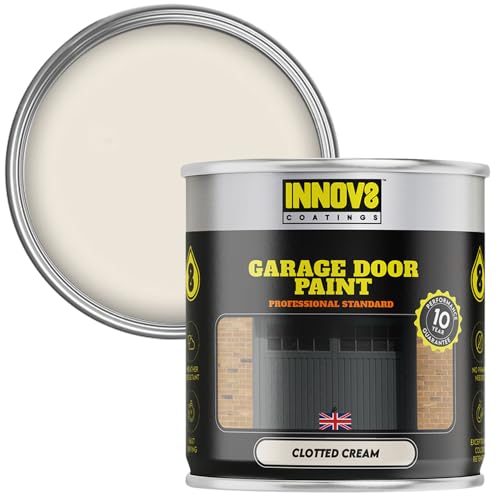 INNOV8 COATINGS GARAGE DOOR PAINT - 750 ml - DIY - NO PRIMER OR TOP COAT - SATIN - FAST DRY - EXTERIOR DOOR PAINT - Metal & uPVC - Clotted CREAM - Garage and Industrial Roller Shutters Paint