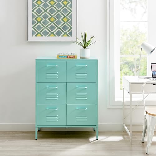 Furniturebox UK Light Blue Metal 6 Drawer Sideboard - Teksi - Industrial Metal Locker Filing Style Cabinet - Living Room Bedroom Bathroom Office Storage - Chest of Drawers - Modern Fun Design