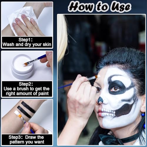 LYINUR Halloween Face Paint, Black and White Face Paint Make Up, Halloween Cosplay SFX Makeup, 50 g White and 50 g Black Body Painting Halloween Special Effects Makeup Fancy Dress Kit