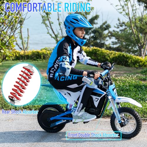 EVERCROSS EV12M PRO Kids Ride On Motorcycle, Electric Motorcycle with 300W Motor, 11.18Miles Long-Range, 12'' Pneumatic Tire, Bluetooth Music, Colorful Lights, Motor Cross for 110cm+ Height