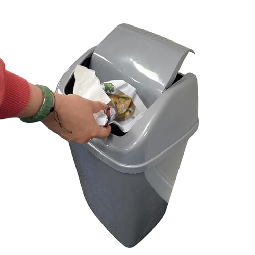 Chabrias Ltd Grey Swing Bin 50 Litre Waste Rubbish Recycling Bin - Flip Top Dustbin for Home, Kitchen, and Office