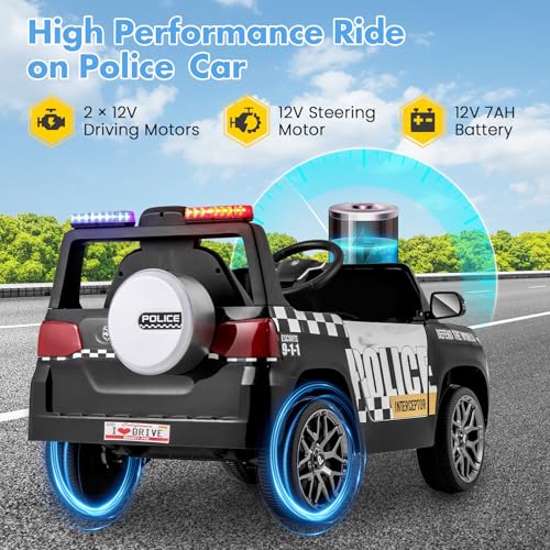 COSTWAY Kids Electric Ride on Police Car, 12V Battery Powered Cop Car with Remote Control, Wireless Connection, Music, Horn, Siren Flashing Lights, for 3-8 Years Old Boys Girls