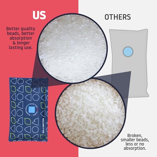 Hillington Car Dehumidifier Bag Reusable 1kg - 2-Pack Moisture Absorbers with Sticky Pads - Microwave Rechargeable, Condensation Absorbers for Windows - Reusable Dehumidifier Bags for Home and Cars