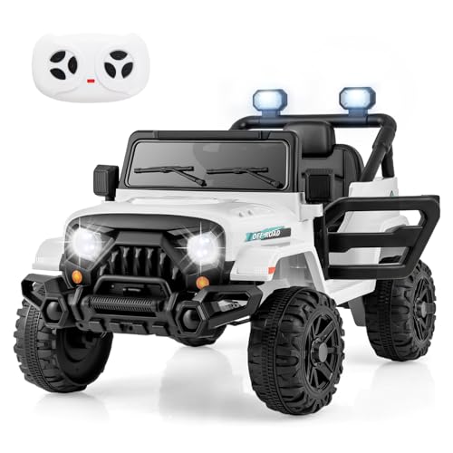 Maxmass 12V Kids Electric Ride on Car, Battery Powered Electric Vehicle with Remote Control, Lights, Music, Horn, Wireless Connection, Children Toy Car Off Road Truck for 3+ Years Old (White)