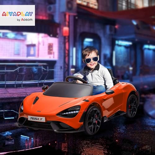 AIYAPLAY McLaren 765LT Licensed Electric Car for Kids with Butterfly Doors, 12V Kids' Electric Ride on with Remote Control, Transport Wheels, LED Lights, MP3 Music, Horn, for 3-6 Years, Orange