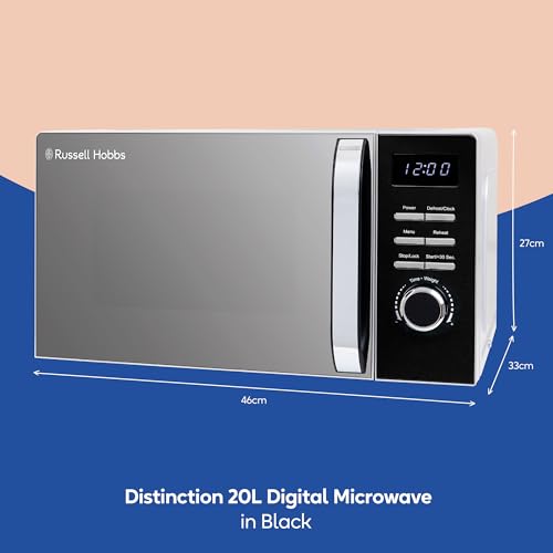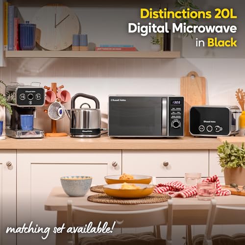 Russell Hobbs Black Digital Microwave 20 Litre 800W Solo Digital with 5 Power Levels, Defrost Function & Easy Clean, 60 Minute Timer, 8 Auto-Cook Menus, RHMD832B