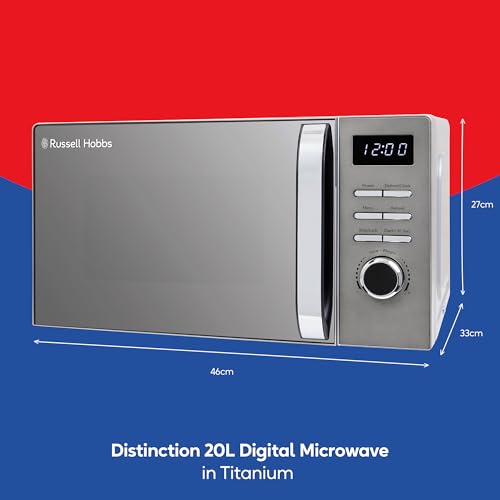 Russell Hobbs Titanium Digital Microwave 20 Litre 800W Solo Digital with 5 Power Levels, Defrost Function & Easy Clean, 60 Minute Timer, 8 Auto-Cook Menus, RHMD832T