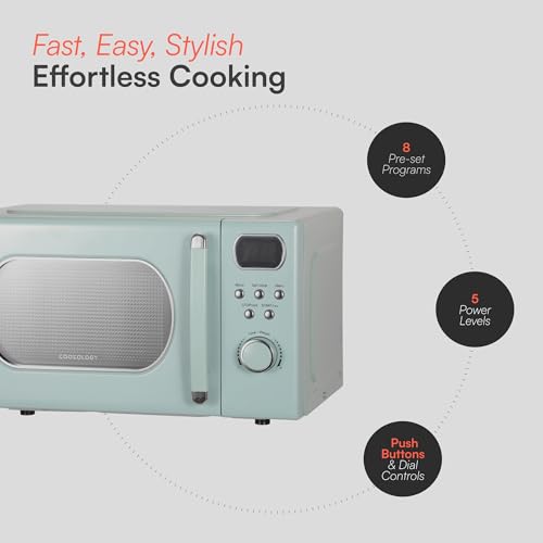 Cookology RETDD20MG Freestanding Retro Microwave - 20 Litre Capacity - With 25.5cm Turntable - 800W Microwave - 8 Auto Cooking Programs - 5 Cooking Power Levels - Defrost Setting - Mint Green