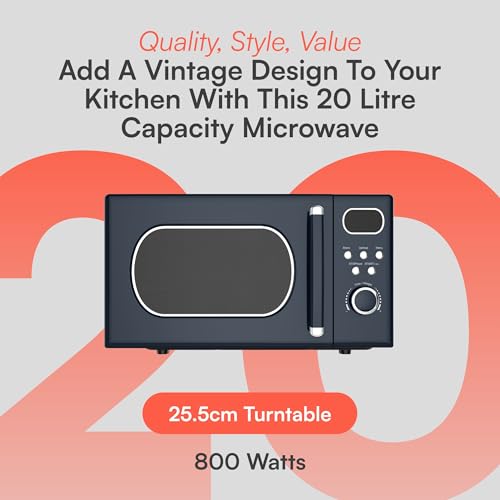 Cookology RETDD20GR Freestanding Retro Microwave - 20 Litre Capacity - With 25.5cm Turntable - 800W Microwave - 8 Auto Cooking Programs - 5 Cooking Power Levels - Defrost Setting - Grey