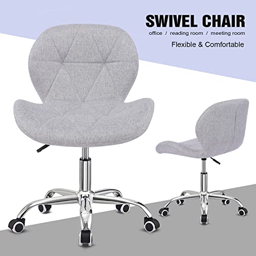 Modern Fabric Swivel Office Chair, Height Adjustable Padded Armless Desk Chair with Wheels for Home Office, Grey
