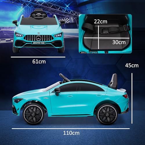 AIYAPLAY Mercedes Benz Licensed 12V Electric Car for Kids, Kids' Electric Ride on with Remote Control, Transport Wheels, Spring Suspension, LED Lights Music, for 3-6 Years - Light Blue