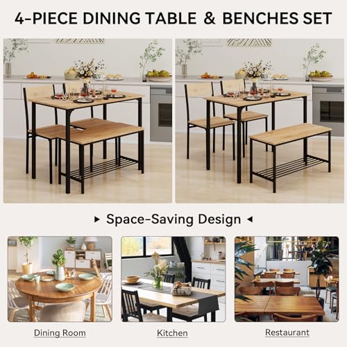 PULUOMIS Dining Table and 2 Chairs with Bench, Dining Table and Chairs Set 4 Piece Dining Room Set, Chair and Bench Set for Restaurant Kitchen Home Bistro Garden, Oak