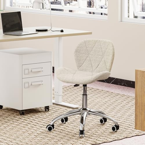 Hadwin Modern Chenille Swivel Office Chair, Height Adjustable Padded Armless Desk Chair with Wheels for Home Office, Beige