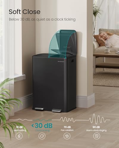 SONGMICS Dual compartment pedal bin with soft close lid, Ink Black