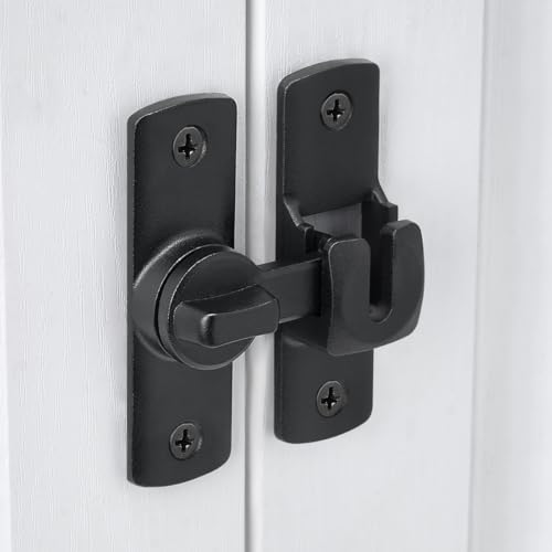 INIRET 2 Packs Black Barn Door Latches,90/180 Degree Gate Lock,Aluminum Alloy Right Angle Door Lock Latch,Flip Gate Latches Hardware,Door Security Sliding Door Lock fo Cabinets,Barn Door,Bathroom
