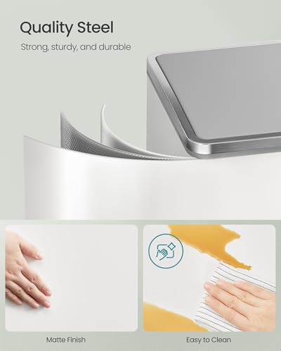 SONGMICS Dual Rubbish Bin, Metal Recycling Bin with 15 Rubbish Bags, 2-Compartment, with Lids, Pedals, Plastic Inner Buckets, Soft Closure, 2 x 10.6 Gallons (2 x 40 L), White and Grey LTB730W82