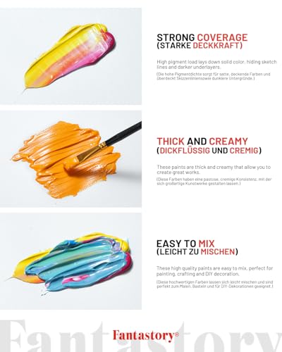 fantastory Acrylic Paint Set, 18 x 60 ml with 12 Brushes; Halloween Acrylic Paint, Waterproof; For Artwork & DIY Projects on Canvas, Wood, Glass, Clay, Fabric, Ceramic, Paper, Canvas